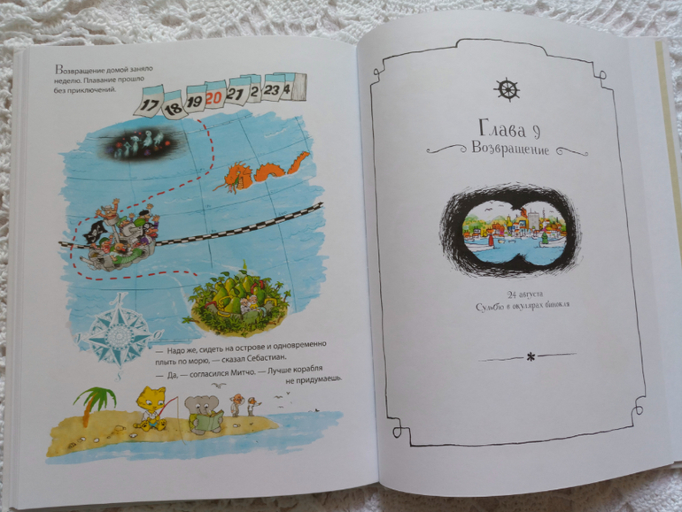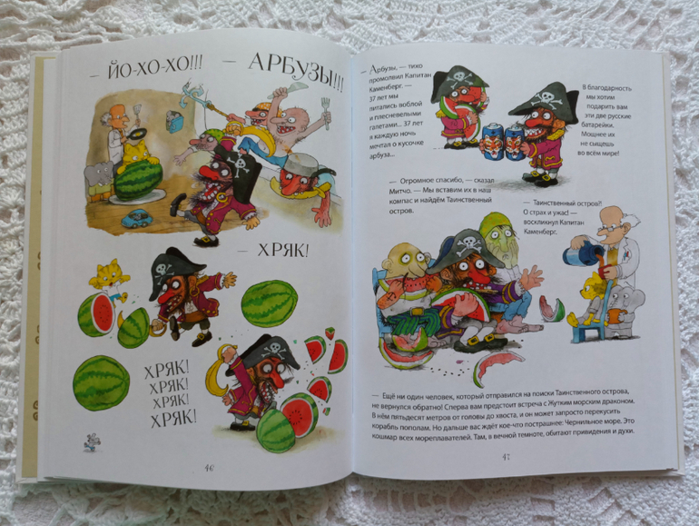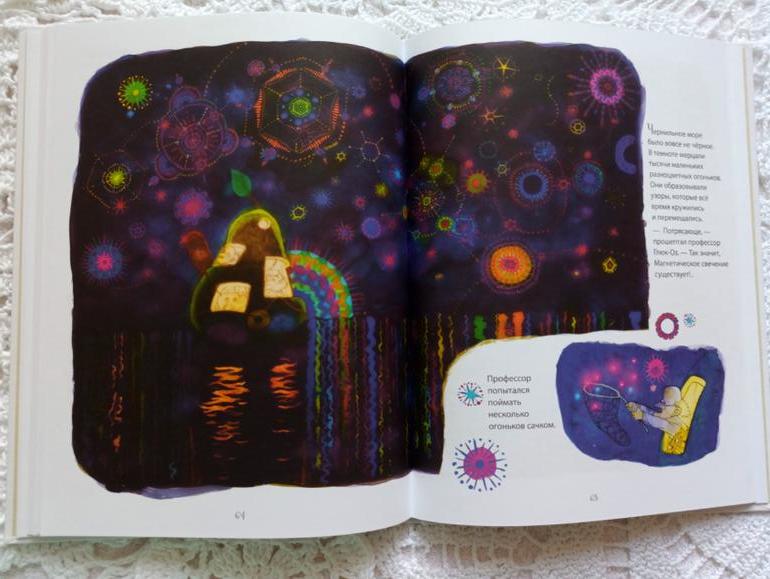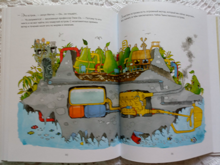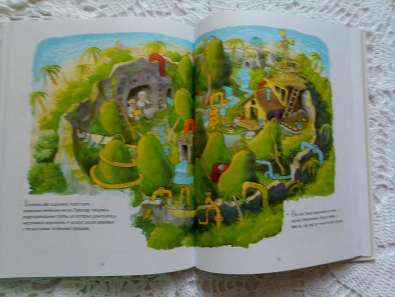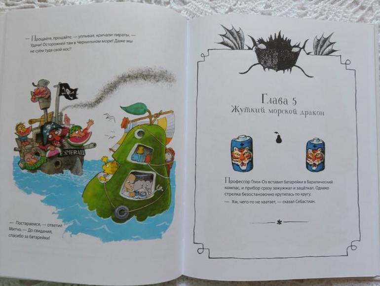 Хотя в книге мало текста, много иллюстраций. Дочь сказала, что главных героев она видела в мультике у бабушке, но я такого мультика не знаю Качество книги хорошее, бумага плотная, иллюстрации интересные. Захватывающий сюжет о путешествии, волшебстве, науке, пиратах, драконе, необитаемом острове. Но мы с первого раза не влюбились.....Надеюсь, что кому-то из дочек книга все-таки приглянется....А то для одного прочтения стоит очень дорого....