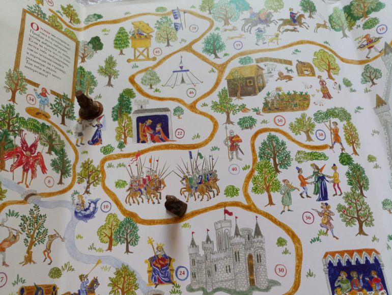 И второй игровой момент: обложка с картой. Читатель может выбрать любой интересный сюжет и открыть книгу на нужной странице ( мой папа им так и читал))))