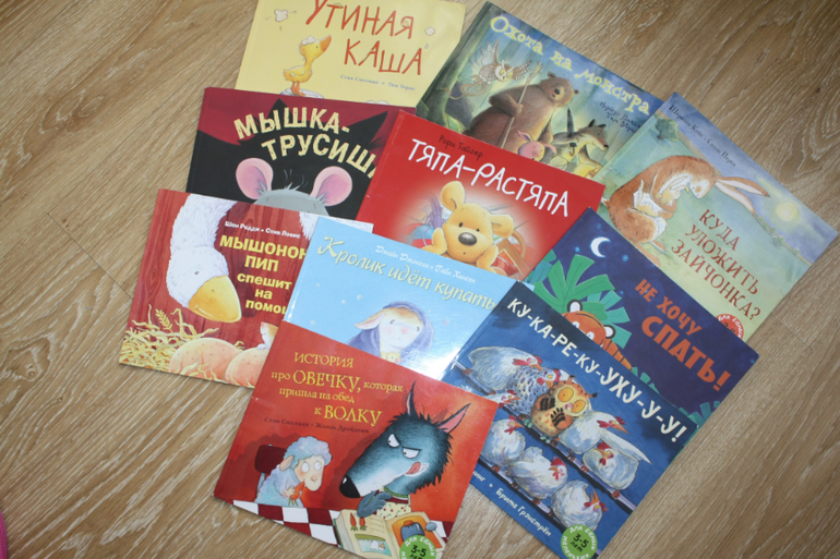 Книжки-картинки дали почитать друзья. Особо понравилась и несколько раз перечитывалась книжечка про овечку и волка.