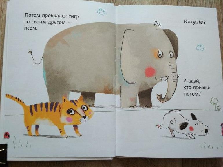 Книжка-игрушка, в которой малышу предлагается по кусочку изображения определить, кто исчез и кто появился на картинке.