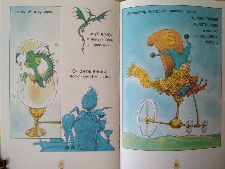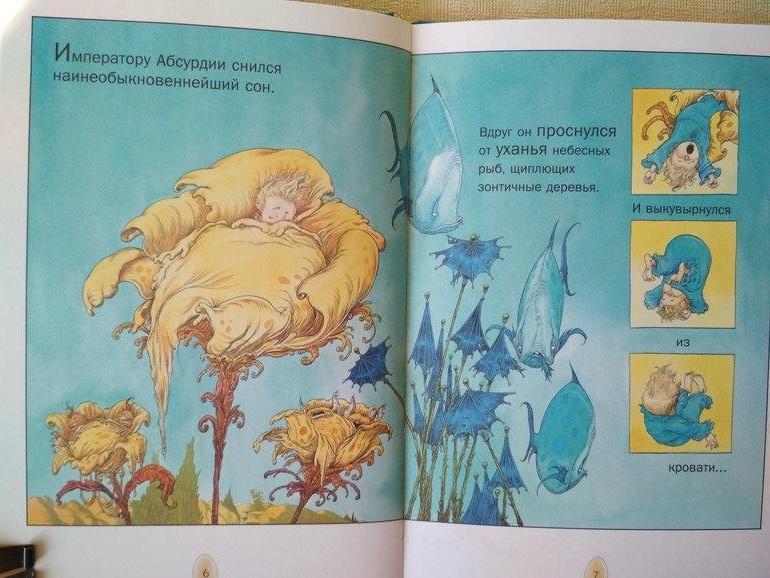 Так и вышло, девочкам очень нравится эта история-фантазия. Маша играла по ней в найди и покажи - отыскивала реальные предметы с последней иллюстрации в Абсурдии и наблюдала за их причудливой трансформацией.