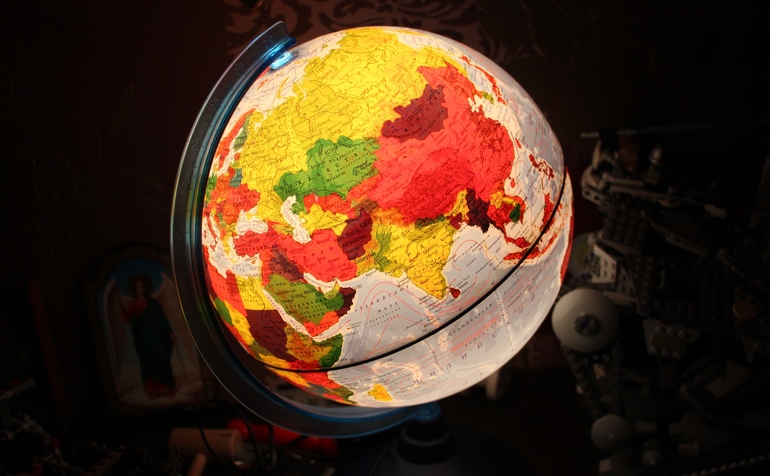У нас глобус 250 мм в диаметре - такой идеальный размер для маленьких квартир. На нем все замечательно видно. Если есть место, то можно 320 мм взять.