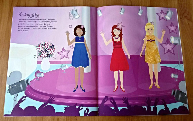 На 8 марта решила сделать ей небольшой подарок. В этот раз у нас "Звезды кино". Как всегда на каждом развороте красивые девушки и море одежды: шикарные платья на церемонии награждения, костюмы для съемок в открытом космосе и исторической драме. Ну и про спорт с развлечениями тоже не забываем.