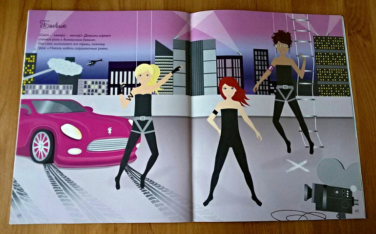В книге каждый разворот посвящен определенной теме и ему соответствует лист с наклейками. Кроме одежды есть различные аксессуары и элементы декора, иногда они остаются и дочка украшает ими свои рисунки.