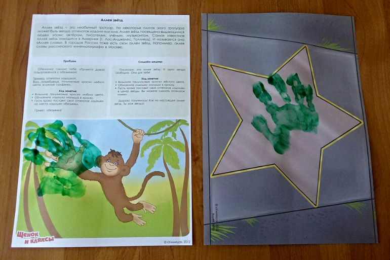 Начали мы с рисования, сын очень любит это занятие. У него все идет в ход: руки, кисточки, мелки, карандаши. Одним арт-листом он никогда не ограничивается, все творчество потом переходит на обычную белую бумагу и шлифуется, пока не надоест. Для начала мы оставили след маленькой ладошки на аллеи звезд.