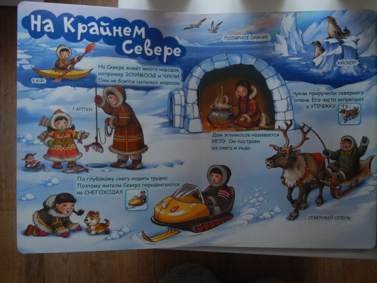 Книги со звуковым сопровождением от "Азбукварик". "Путешествие в прошлое" и "Планета людей" Очень они мне нравятся. Хорошо подойдут для тех, кто проводит тематические недельки/дни. Мы такие не проводим. Но обыгрываем почти все, что читаем. Вот , например играли в северные народы после просмотра книги.