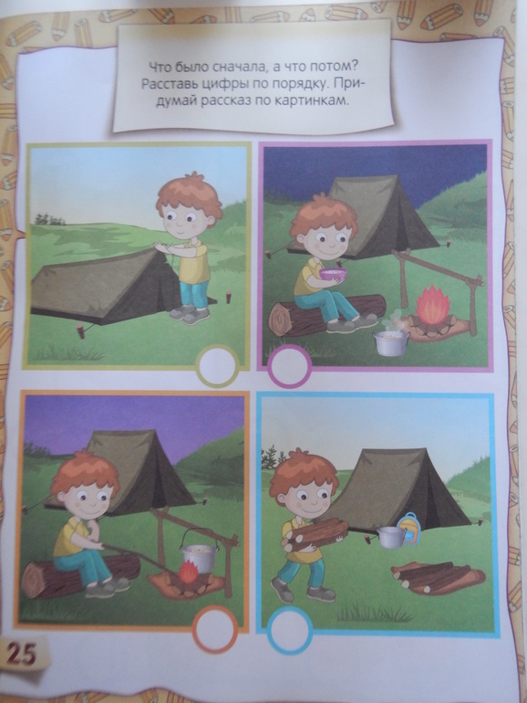 Вот еще одна интересная рабочая тетрадь. Тема - установить правильную последовательность действий и составить рассказ.