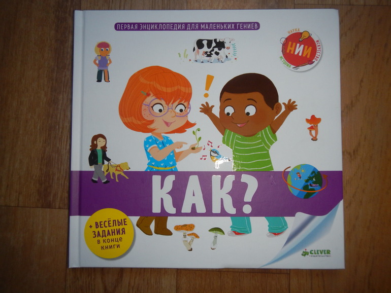 " Первая энциклопедия для маленьких гениев " от Клевер. Формат Вопрос- ответ. Ответы в картинках и несколько предложений, то что и нужно в этом возрасте. Темы разноплановые - от "Откуда берется молоко" до "Как вылечить сломанную руку".