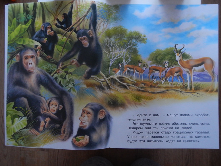 И еще одна бюджетная находка из Ашана. Красивые реалистичные иллюстрации, доступный текст. Есть темы: ферма, река, Арктика, Африка. У нас Африка.