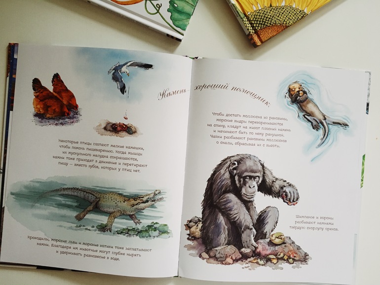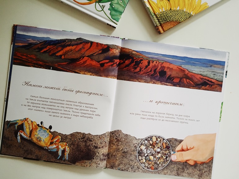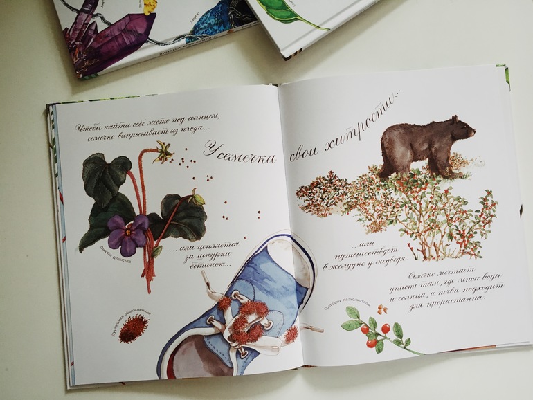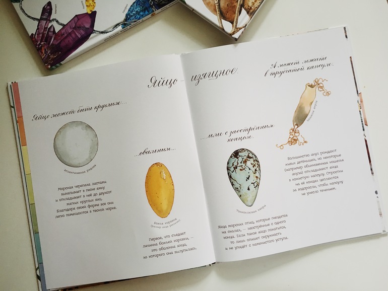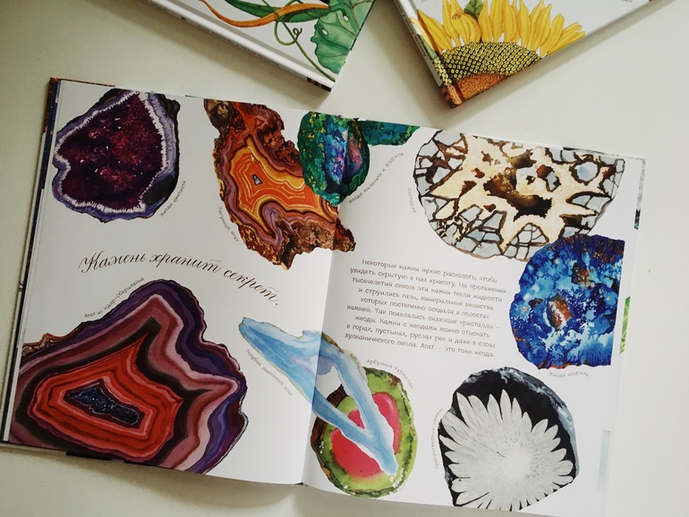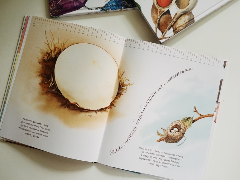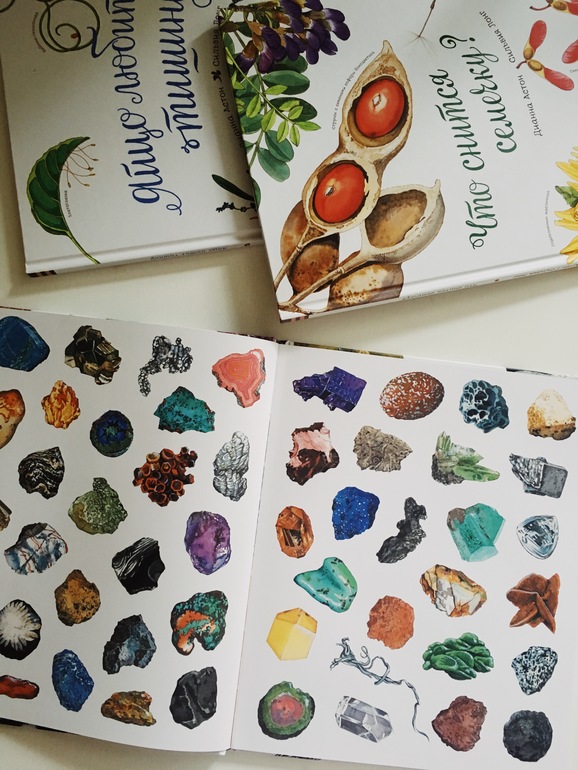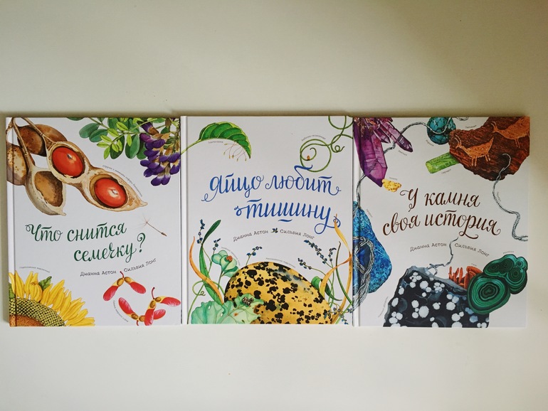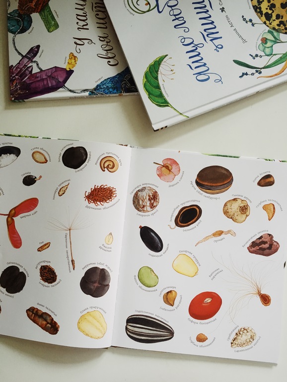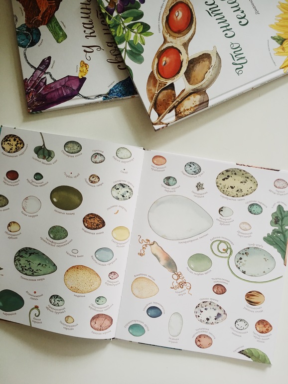 Мне очень понравилась подача материала. Книги не перегружены текстом, при этом, в них можно узнать много интересных и необычных фактов о семенах, яйцах и камнях. Признаюсь честно, я многого не знала и поэтому сама читала с удовольствием.