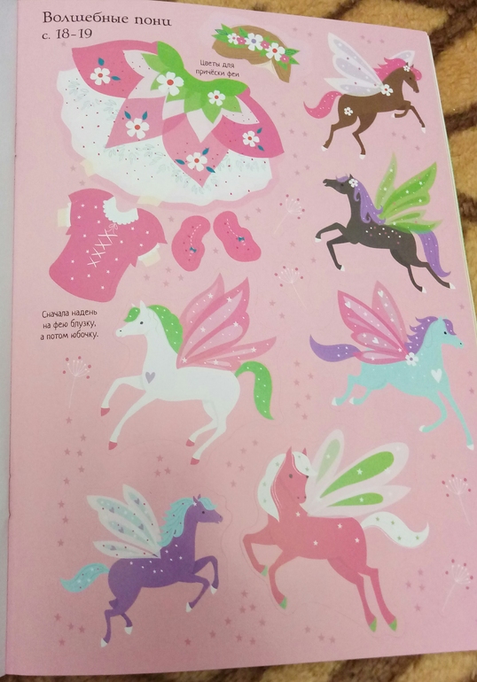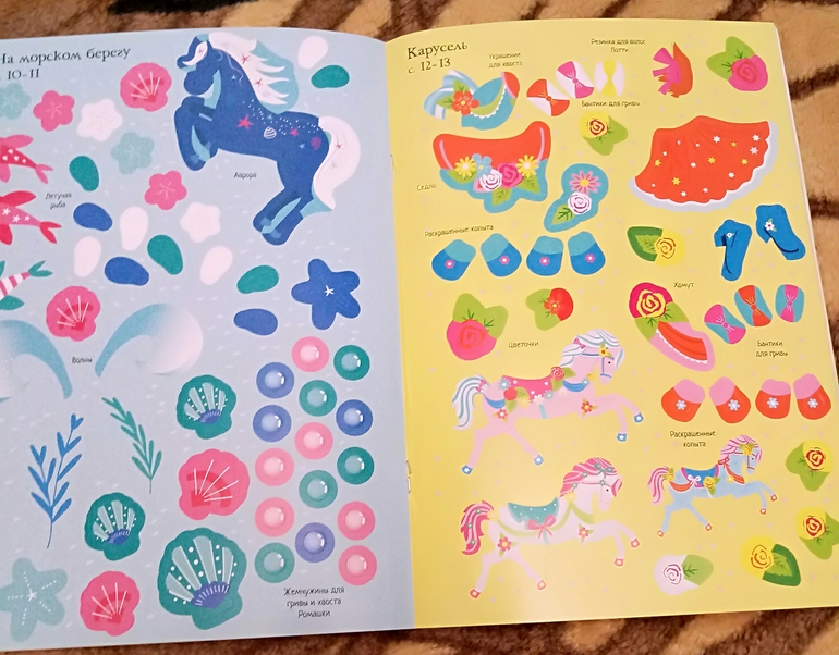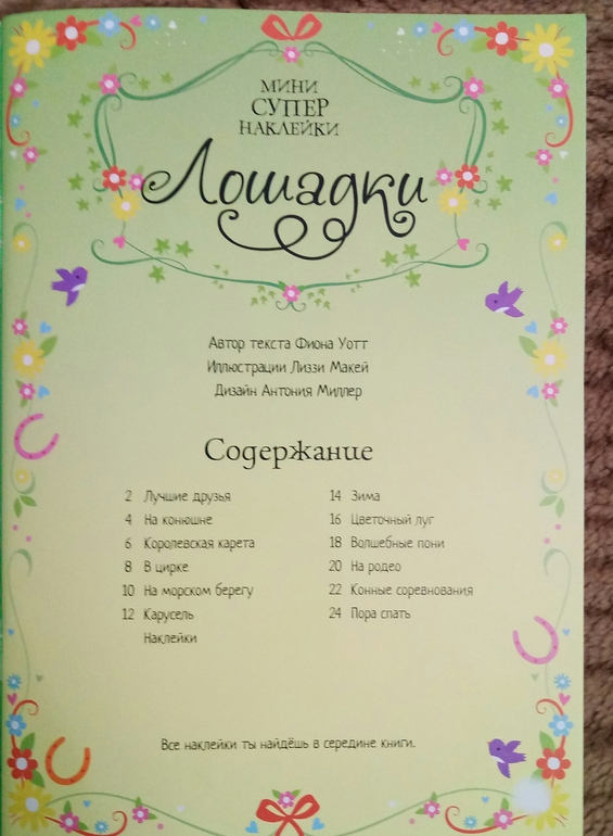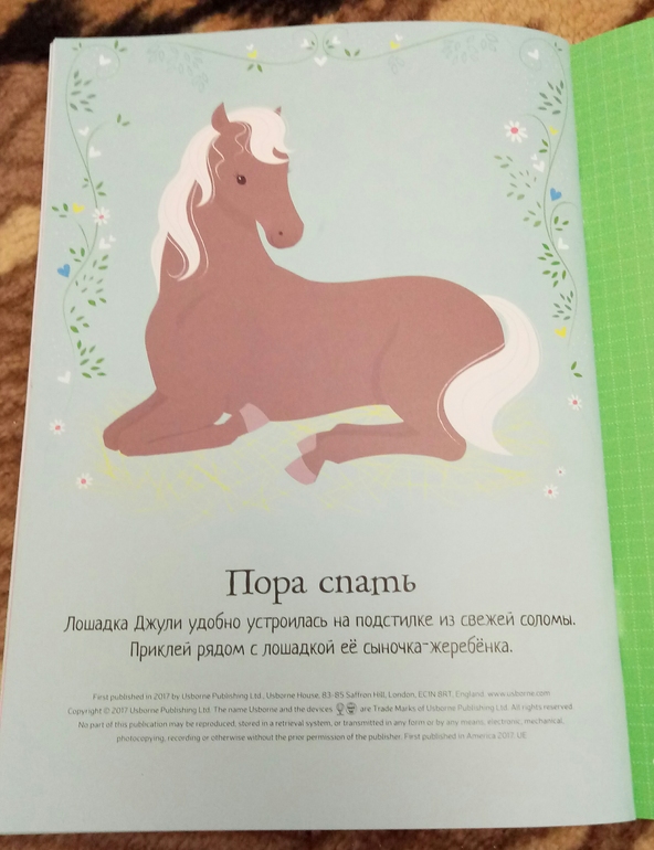Книжка маленького удобного формата, и в отличии от большой стандартной серии ее очень удобно брать с собой в дорогу, в поликлинику, туда, где надо ребенка на какое отвлечь развлечь. И , конечно, цена у мини серии привлекательнее) поэтому пока у нас лошадки вот таким розовым пятном выделяются среди чисто мальчиковых наклеек