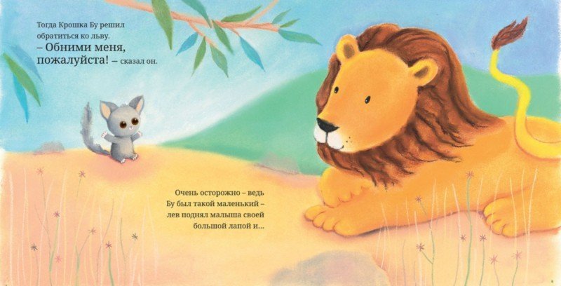 Наступило утро. Все звери в зоопарке либо проснулись, либо пробуждаются, и только Крошка Бу, детёныш маленького африканского зверька галаго, собирается... ложиться спать. Ведь он ночной зверёк - значит, спит днём, а бодрствует ночью. Перед сном мама всегда обнимает его, но сегодня мамы рядом не оказалось, и Крошка Бу решил отправиться на поиски того, кто сможет обнять его и приласкать. Кто это будет? Может быть, кенгуру? Или крокодил?! Кто знает...