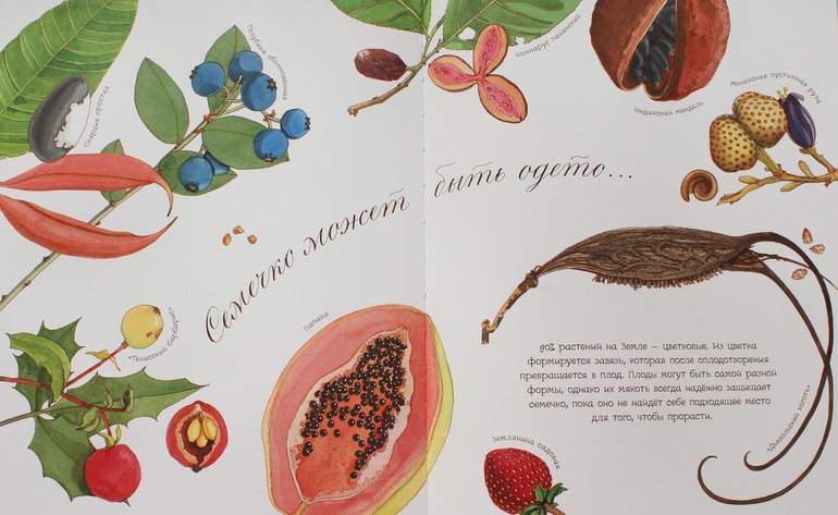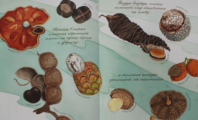 С помощью своих волшебных иллюстраций художник Сильвия Лонг, которая сопровождает Дианну Астон во всей серии артбуков, учит нас видеть красоту даже в самых, на первый взгляд, непримичательных природных объектах. Право, приходило ли кому-либо в голову из вас любоваться семенами растений?
