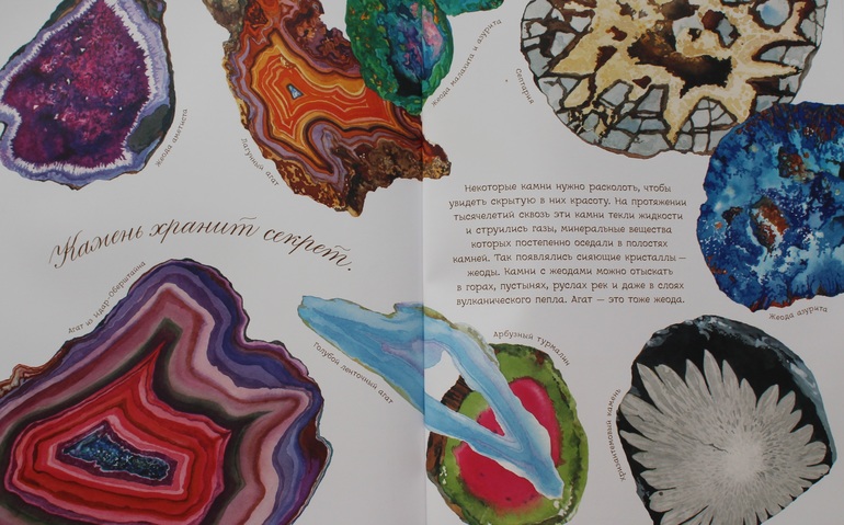 Когда берешь в руки книгу про камни, кажется, что бы в ней можно увлекательное найти? Ну разве что, возможно, полюбоваться необычностью фактур и цветовых пигментов и интересных названий... Хотя, право, при слове "камень" до появления в доме этой книги, у меня перед глазами всегда возникал всего лишь некий серый брусок. А на самом деле, они представляют собой произведения природной красоты. Вот посмотрите: