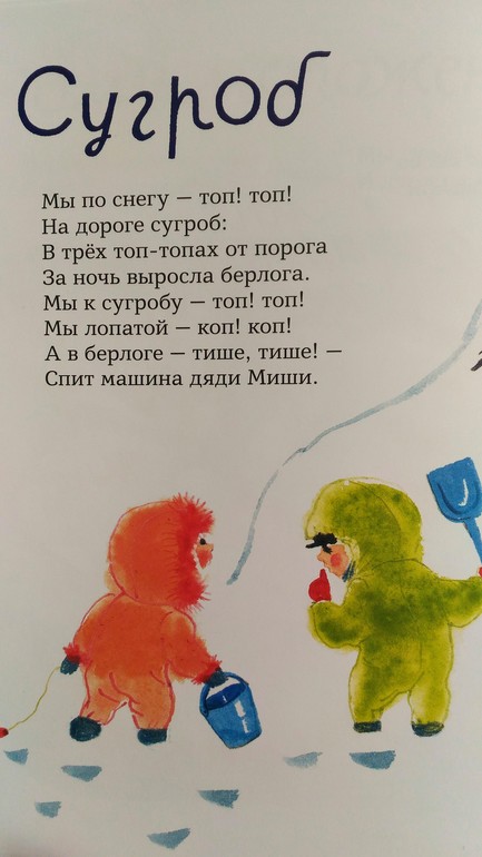 Пока больше всего нам нравится стих про сугроб. Подозреваю, что дело в его легком запоминании и сюжете: мы неравнодушны к совочкам и лопаткам😂