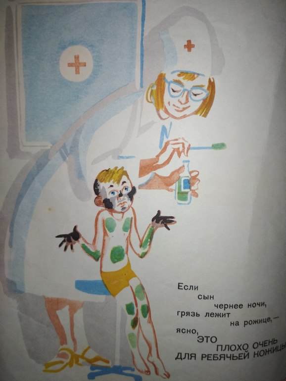 а вот эту медсестру из Что такое хорошо и что такое плохо? я не понимаю, она же грязь замазывает зеленкой: