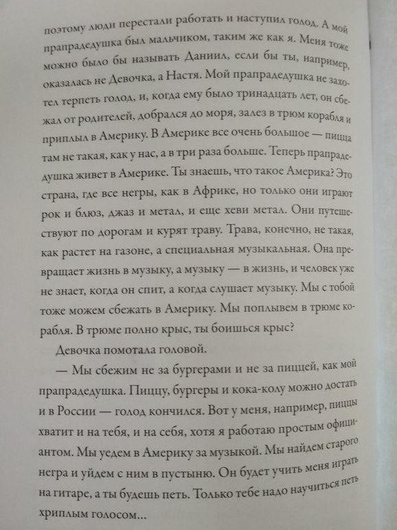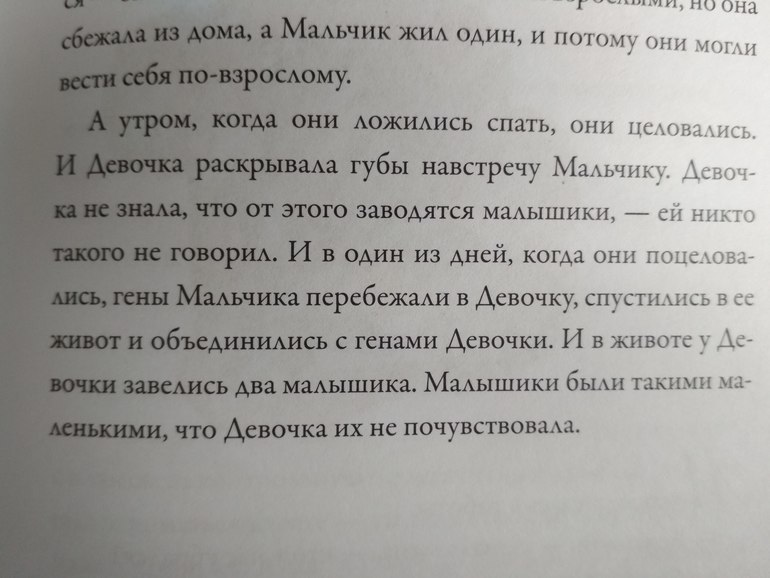 Парочка твёрдо решила отправиться в Америку, несмотря на то, что Девочка забеременела. Вот так это событие описывается в книге.