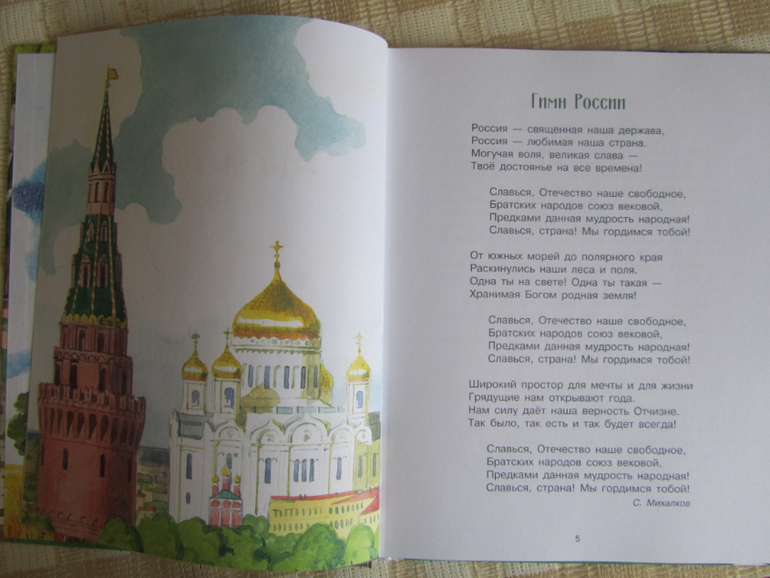 Книга ожидаемо начинается с гимна страны