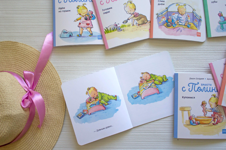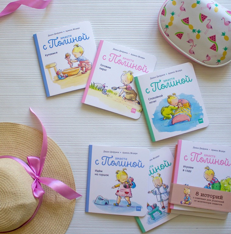 "Вместе с Полиной" (в Лабиринт) это набор из восьми книжек-малышек на скрепке - новиночка от изд-ва Манн Иваново и Фербер. В каждой короткая истории из жизни маленькой девочки Полины - здесь о самых простых делах малыша - вместе с Полиной и ее куклой мы купаемся, одеваемся, ложимся спать, идем на горшок, чистим зубы и т.д.