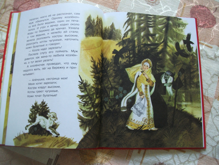 У меня тоненькая про Алёнушку есть, ещё из моего детства, но очень плохо сохранилась, так как пережила переезд и изначально бумага в книге очень плохая была, какая-то рыхлая.