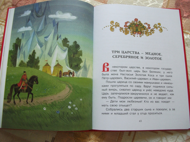 Это книга Русских сказок с рис. Тамары Шеваревой от Стрекозы. Тоже брали подобную в библиотеке , но там сказок было больше, и я решила и себе купить эти иллюстрации. Текст по Афанасьеву. Опять же шрифт крупный.Рисунки на каждой странице.