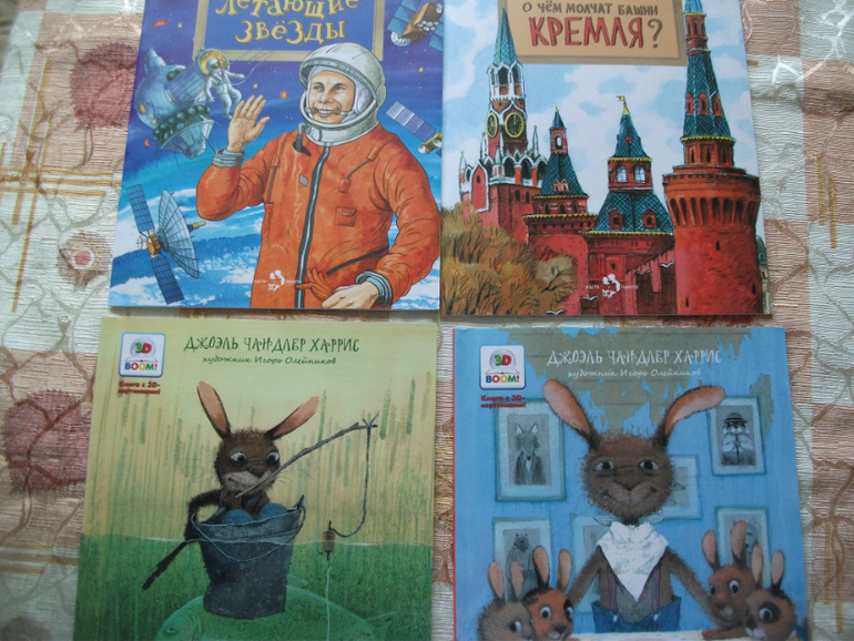 Книги со сказками Харриса , рисунками Олейникова, тонкие журналы, внутри есть развороты , с описанием технологии 3д, я не вникала., что конечно портит книгу как книгу((