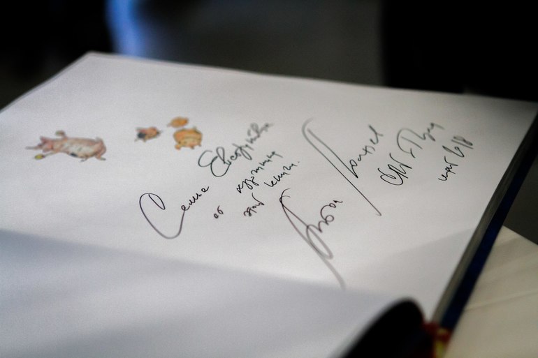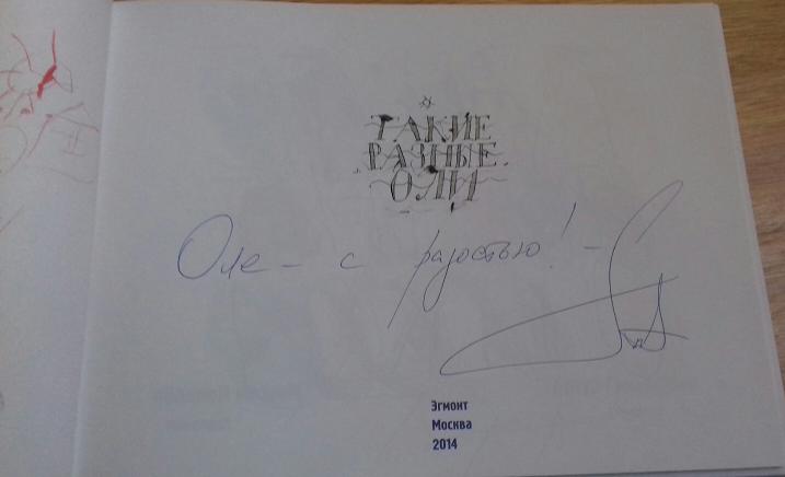 Он потрясающе рассказывал о своей работе с учениками, о походах на Алтай, о том, почему он, хоть и музыкант, ненавидит петь. Но так, как рассказывал он, я не расскажу никогда в жизни, поэтому перейду прямо к хвасталкам автографами. Это мне: