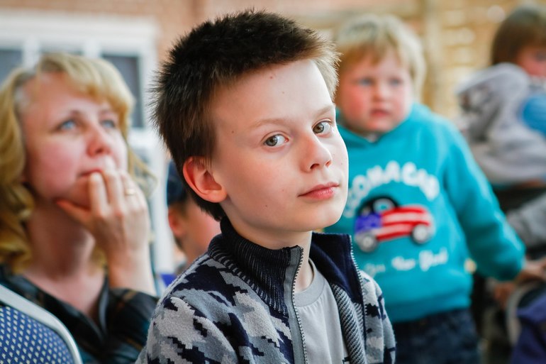 А вот и я в первом ряду в клетчатом платье))