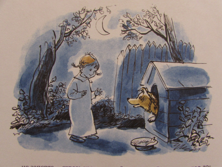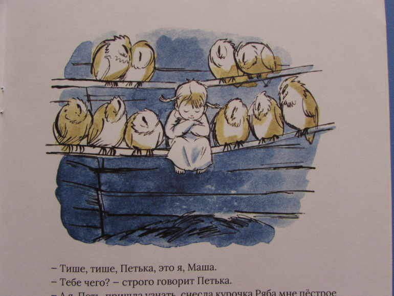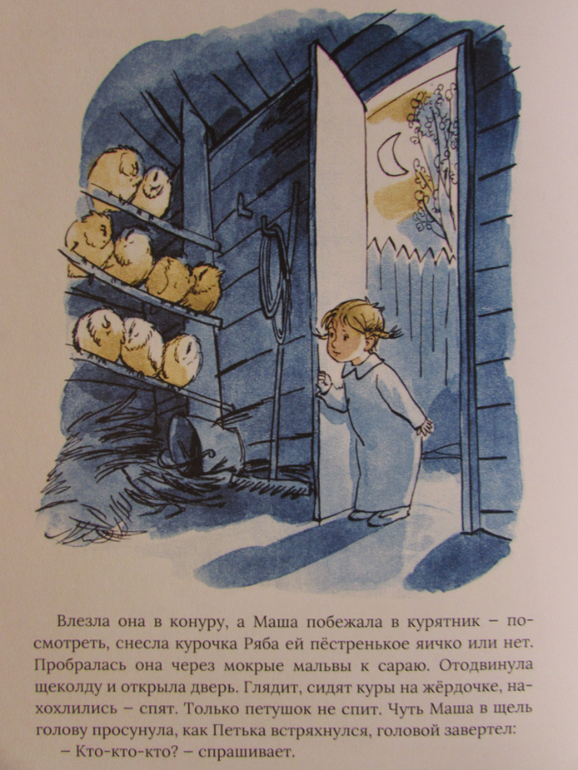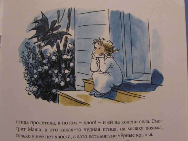 Но ни конура, ни курятник, ни даже удобный чердак, на который её пригласила летучая мышь, девочке не нравятся. Не понравилось Маше и на болоте у цапли. Так и возвращается она в свою собственную кроватку, которая теперь самая лучшая на свете.
