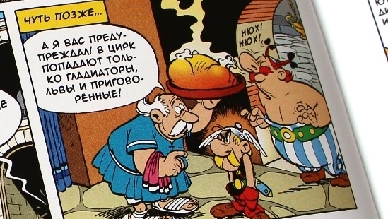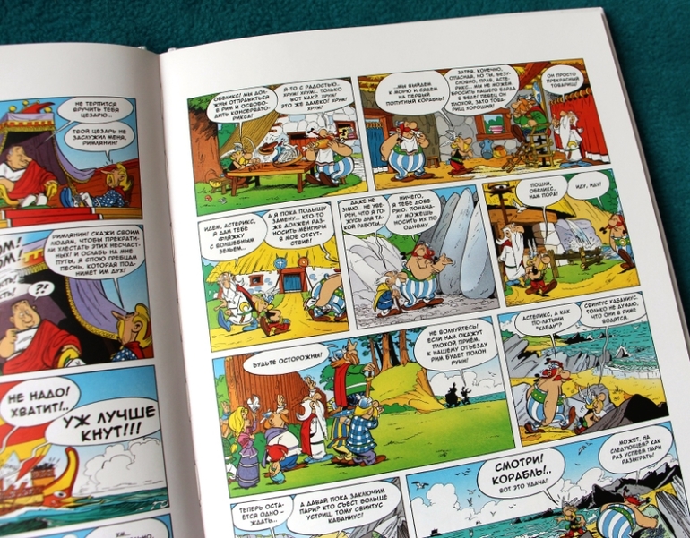 А вот этот комикс наша последняя и большая любовь. История всем известная, ведь мультики про Астерикса и Обеликса очень популярны. Нарисованы замечательно, информация с картинок легко считывается и понятна. Текст написан хорошо, читабельно. Очень мне нравится, что книжек про галлов вышла целая серия - можно еще долго их любить. У нас четвертая книга, другие я не читала, но видно, что они не имеют строгой последовательности и можно выбирать любую. История простая, незамысловатая, веселая - ее прочитать, как мультик посмотреть.