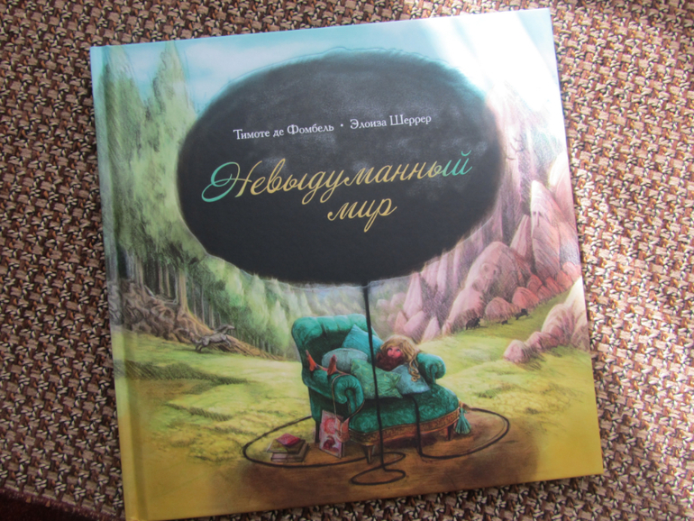 Автор этого произведения Тимоте де Фомбель уже довольно известный по его первому произведению принятую многими критиками крайне положительно и отмеченному многочисленными наградами "Тобби Лолнесс". Эта книга тоже стоит у меня в списке к покупке, но дети пока ещё до неё не доросли. Вообще Невыдуманный мир позиционируется как своего рода терапия при возникновении у детей чувства потери (например кого-то из близких) и страха вызванного этим. У моей дочери много разных небольших страхов, эту книгу буду читать периодически, может она тоже подействует как то положительно на эмоциональное состояние ребёнка. Откровенно говоря, смотря на этот огромный чёрный шар висящий над беззащитным перед ним ребёнком, непроизвольно появляется желание помочь ребёнку победить и лопнуть эту черный сгусток детских страхов, но оп сути ребёнок только сам может это сделать, а мы взрослые только можем направить и подставить своё плечо в случае необходимости.