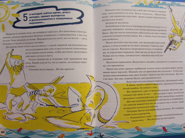 А ещё НкаЛе, КаГен и ТькаВи путешествуют по океану сначала на плоту, а потом в батискафе. И заодно знакомятся с обитателями морей и океанов (кашалот, дельфин, кит, угорь, чайка, рыба - молот и пр.)