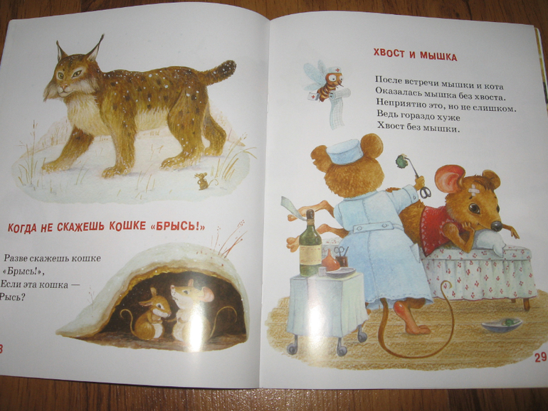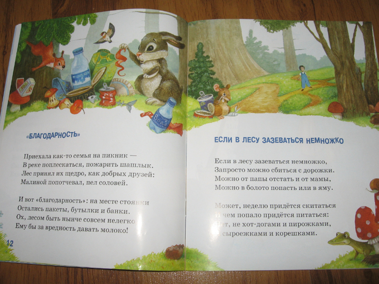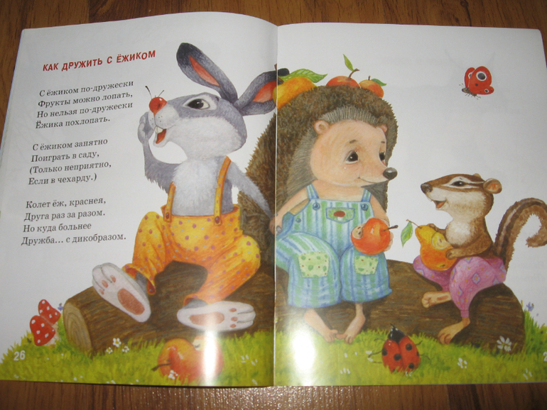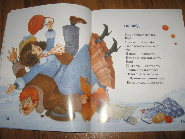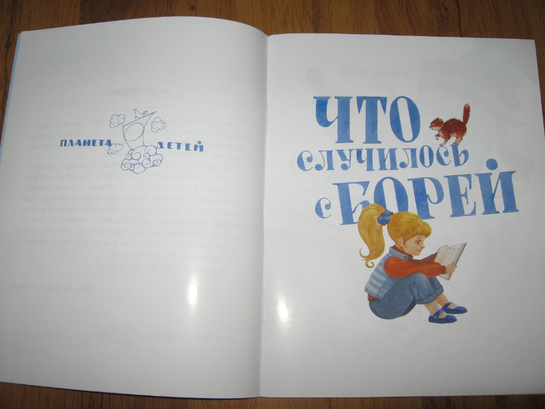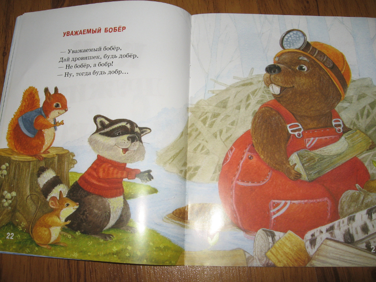 Книга тоненькая, напечатана в Минске. Бумага внутри тонкая белая меловка, интересные цветные иллюстрации. К нам она приехала с браком на обложке (при печати видимо произошло замятие бумаги и образовалась небольшая складочка), но отказаться и перезаказать ее я не смогла, потому что очень хотелось ее забрать домой, а не ждать еще неделю. Тем более, что чтению это абсолютно не мешает. Вот на этом фото на обложке светлая примерно по центру странички - это и есть брак