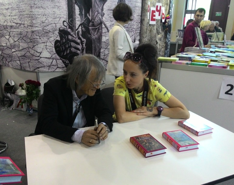У Вита Новы цены, как в магазинчике в музее печати. Весь день был на их стенде Юрий Норштейн. Сейчас он и его жена, Франческа Ярбусова, готовят к изданию совершенно новую книгу. А через пару лет обещает издать книгу по мультфильму "Цапля и журавль", которую я очень жду! Там же встретился и Михаил Яснов (у ВН вышла его "Новая лесная азбука" ).