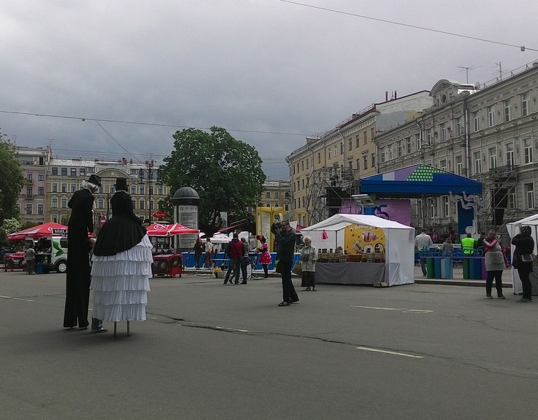 А рядом артисты веселили народ, дети игрались с мыльными пузырями и продавался горячий чай. Холодно было с утра.