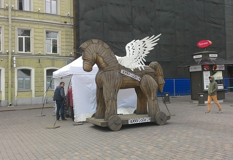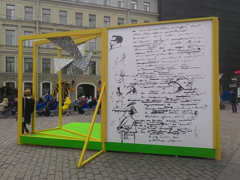 По пути еще встретились телефонные будки для прослушивания голосов поэтов. Но мы не заходили в них в этом году.