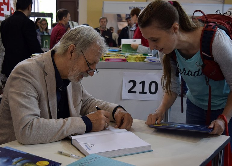 Конечно, многие ждали встречу с Вячеславом Назаруком. Книги подписали и у него. Очередь была довольно большая и шумная (я не смогла расслышать истории, которые он рассказывал :))) Хотя, по сравнению с прошлым годом, почитателей талантов было больше. Что меня порадовало тоже! Приятно видеть улыбающиеся лица творцов и почитателей. Приятно говорить и слышать добрые слова в ответ! И шутки! Сколько ж их было! Таких дружеских, легких!