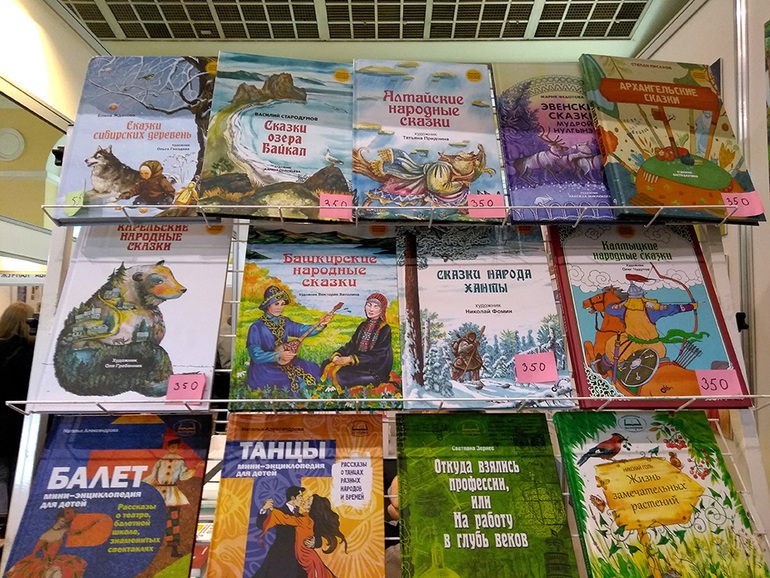 Были взята также старые тексты, например сказки Стародумова и сделана новая книга. К каждой книге, как меня уверили был подобран художник, способный аутентично, достоверно изобразить особенности быта описываемой области. В каждой книге есть описание местности, карта и вводная статья перед сказками. В книге про ханты мне была показана оригинальная печь на рисунках, да, сам такое не придумаешь. Быт, одежда, оружие - всё старались воспроизвести с вниманием к деталям и правдоподобно. Проходила раньше мимо в лабиринте, присмотрюсь.