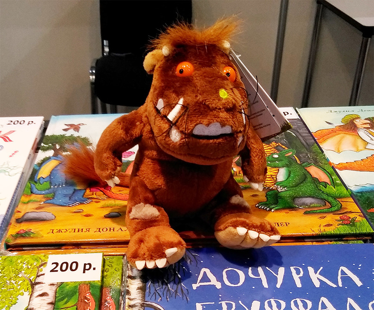 Груффало довольно маленький. Едва 15 см. У Белой вороны, к слову, лежит Финдус. Большой и маленький. (Оба маленькие) Побольше 600, совсем маленький 450.