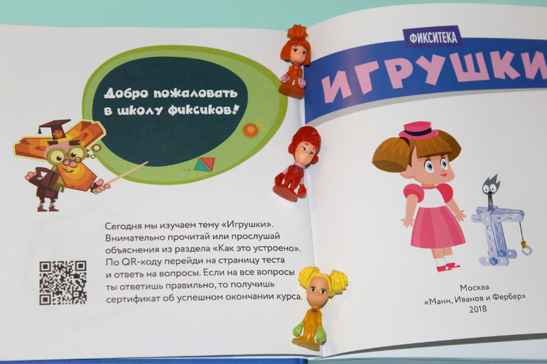 В каждой книге 7 рассказов, каждый рассказ полностью повторяет одну серию из мультика. Рассказы подобраны в соответствии с темой книги. После каждой истории есть раздел "Как это устроено", в нём даётся краткая информация по теме. После прочтения всей книги нужно вернуться в самое начало, там дан QR код, по нему можно пройти на страницу с тестом, ответить на вопросы и получить сертификат! Здорово в издательстве придумали с сертификатами! Настёна любит получать, грамоты и дипломы, бережно хранит их и достаёт посмотреть время от времени). Её коллекция пополнилась тремя сертификатами). Было интересно наблюдать, как она волновалась, один раз поспешила, нажала не туда, ответ не засчитали, расстроилась, но печалится не было времени, нужно было отвечать на следующие вопросы.)) Книги прочитаны уже несколько раз. Сначала я ей их прочитала, потом она самостоятельно их прочитала. С новой силой проснулась любовь к фиксикам. Мультики теперь смотрит только про них!)) Ура! Прощайте, Винкс!!!! Особенно её порадовало, что в конце каждой книги, в содержании, напротив названия каждой части есть QR-код для просмотра данной серии. Для Настёны это подобно волшебству! Никогда раньше ей не доводилось смотреть мультики по телефону. Особенно ценно это в дороге. По пути на дачу имеется вредный переезд, он постоянно закрыт, и закрывают его на 30-40 минут((. Ожидание бесконечно, особенно для ребёнка. Зато теперь, как едем на дачу, книги про фиксиков всегда у дочки в рюкзаке. В дороге она смотрит мультфильмы про умных и рукастых фиксиков, а на даче, после того как набегается и наиграется, читает истории про них своим маленьким двоюродным братьям.