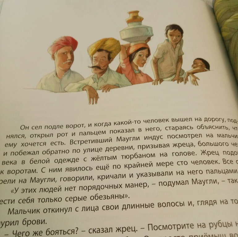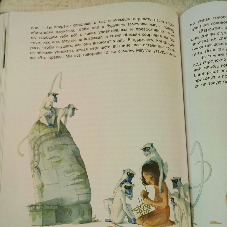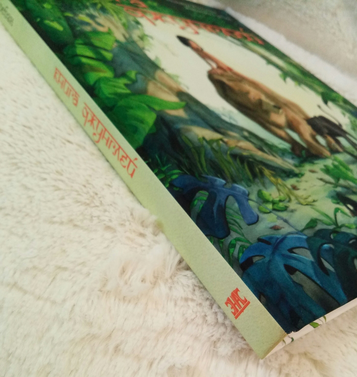Вот знаете, совсем я не собиралась покупать эту книгу, к иллюстрациям Гребана относилась совершенно спокойно, Маугли не отзывался во мне теплыми детскими воспоминаниями, я даже в сборнике, старом, где Маугли, Карлсон и Винни Пух, помните, был такой в нашем детстве, именно Маугли никогда не читала.. ну и потом не полное содержание меня окончательно останавливали.. а потом вдруг после очередного замечательного отзыва я как то присмотрелась, но было поздно, тираж тю тю... а последней, весовой каплей стала вот эта черная красавица