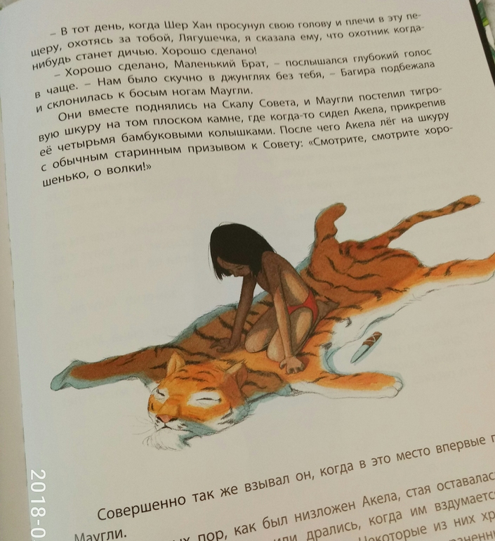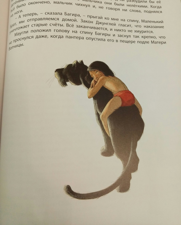 А рисунки Гребана! Что, я равнодушна была?! Ну каждый имеет право на ошибку) они волшебные! Живые, сочные, правдивые, и не знаю как он это делает, они как будто в движении! Вот вот, и волчица мягко пойдет по траве, Маугли потянется за лягушкой, Шер Хан дернет хвостом..