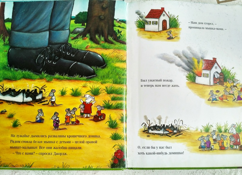 Мышатам он отдал свой ботинок, ведь их дом сгорел и жить им негде :