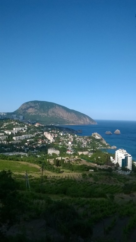Поэт был буквально очарован этими местами. Ну еще бы, вот, например, вид на гору Аю-Даг: