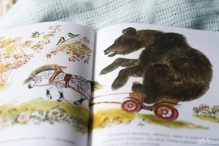 Продолжали читать Теремок, Колобка, Волка и Козлят, Репку, Курочку Рябу (новую волну пылких чувств к последним вызвала покупка чудо-книжек с иллюстрациями Лосина, о которых я писала в прошлом периоде). А добавились в регулярное увлеченное слушание следующие сказки.