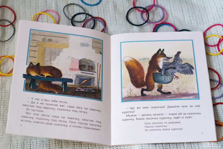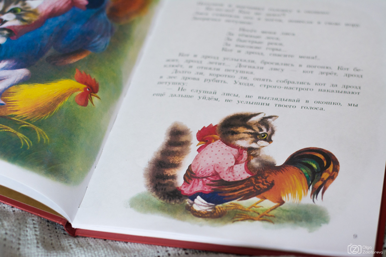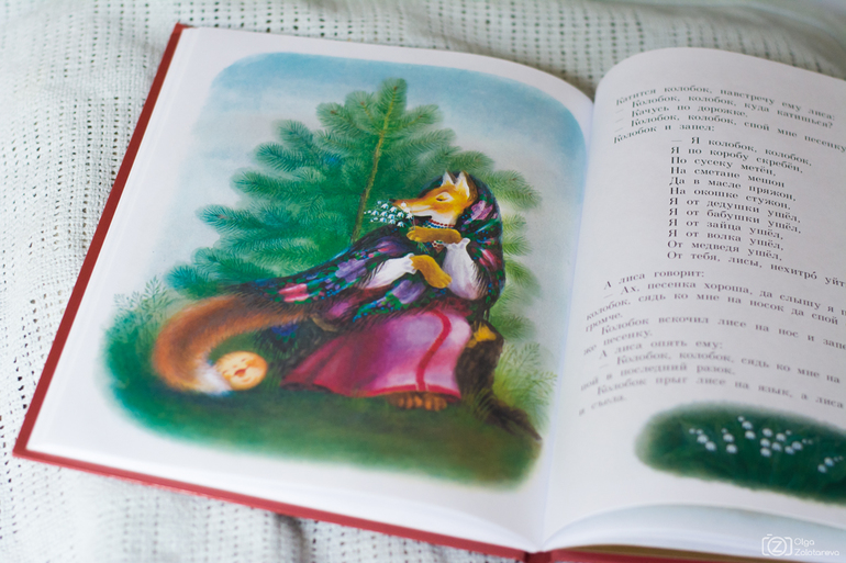 Но лисе, увы, ребенок мой удивляет меньше времени здесь. А любимые сказки - Петушок - Золотой гребешок и Бобовое зернышко (она здесь, замечу, в непривычном изложении, но мы в других книгах и привычное читаем).