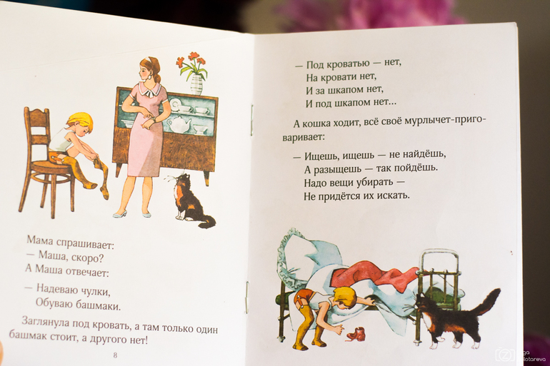 Маршак. С Маршаком, как и с Чуковским, всё сложно всегда: произведений очень много, ни один сборник не охватит, и у каждого сборника недостатки. У нас пара сборников схожих (дома и у бабушки с дедушкой), и несколько произведений в тонких книжках по отдельности. Многое не пробовали читать и сейчас (2,2 года): "цветные" стихи, "календарные" и т.д.