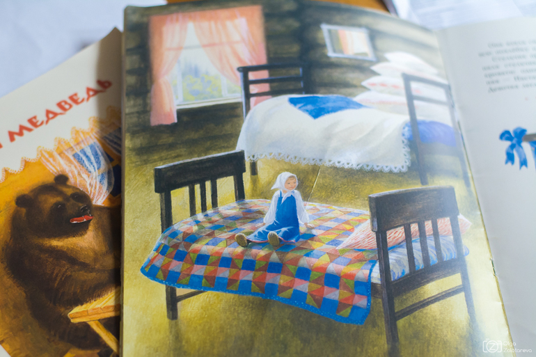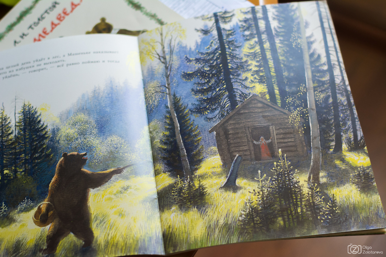 Три медведя, также проиллюстрированая Устиновым (Нигма). Эта сказка и читалась и игралась бесконечно. И медвежонком Мишуткой дочка стала называть себя под впечатлением )) Недавно я увидела где-то, что есть сборник, в который входит эта сказка с рисунками этого же художника. Так вот там, по большей части, рисунки другие! Одна сцена в тонкую книжку попала, другая в сборник, и так далее. Я хочу все и сразу! :)