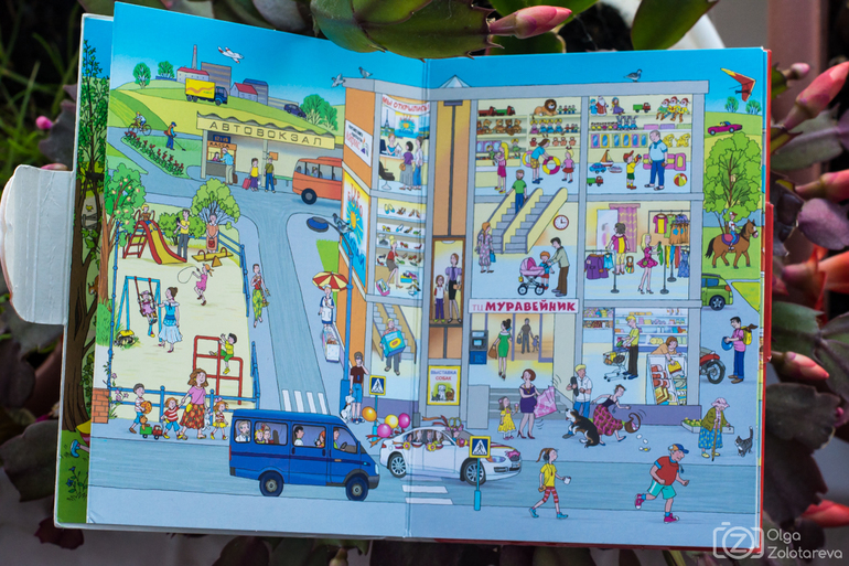 И наконец, виммельбух не по возрасту, который, тем не менее, захватил нас в 1,6-1,7: Я иду искать в Санкт-Петербурге (Клевер). Книжка замечательная, на мой взгляд, но года на четыре, если по делу её использовать, что мы и будем делать.