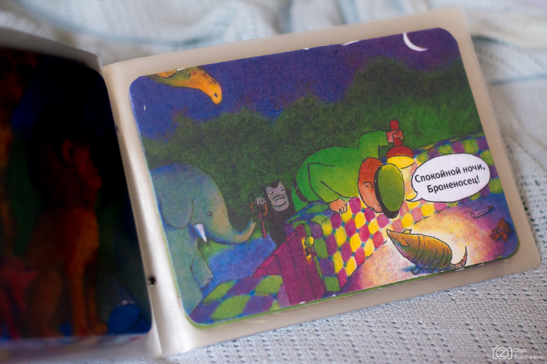 Спокойной ночи, горилла (Розовый жираф). Когда я твердо решила заиметь книгу в нашу библиотеку, её уже давно не издавали. Вовремя подвернувшиеся мне сканы сэкономили несколько сотен рублей на покупке зарубежного варианта, и у нас появился самиздат (как и несколько других книг, к слову). Это сугубо малышковая книга, перерасти её быстро. Но до чего же славная!